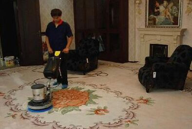 用進口地毯機配合防霉高泡地毯清洗劑,針對不同污漬使用專業清洗劑針對處理,吸水機吸污達到清洗如新的效果。