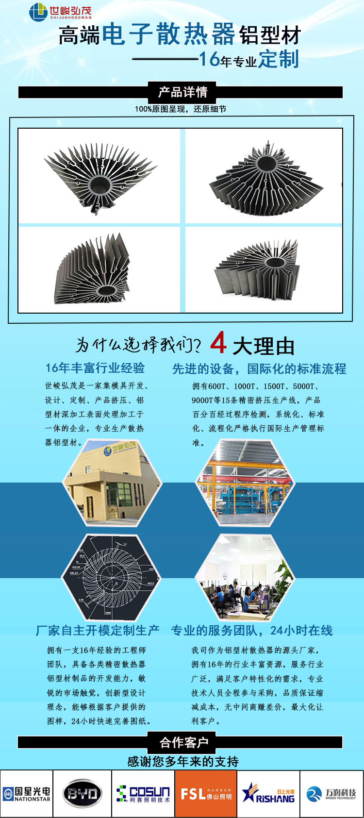 產品耐用性:國標氧化鋁型材散熱器,耐候10年不變色。